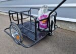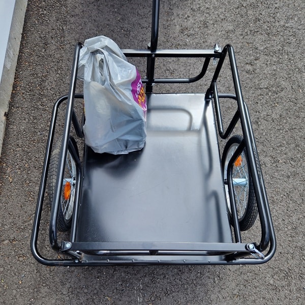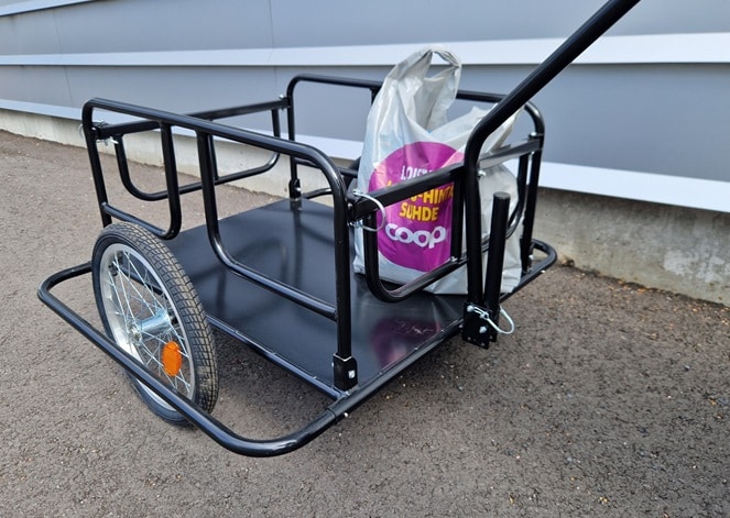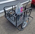 Pulverimaalattu putkirunkoinen peräkärry joka on helppo kiinnittää skootterin takatelineeseen.Ilmakumirenkaita suojaavat putket.
