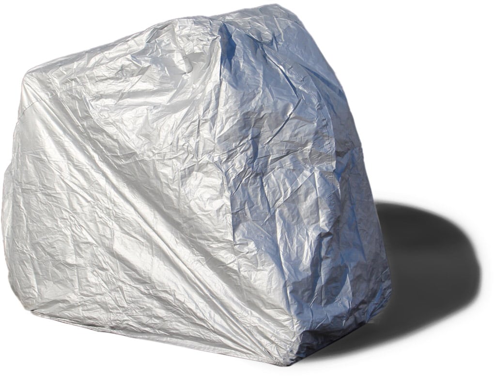 Kuvassa suojapeite Pyrkijä E400 kolmipyöräisen sähköskootterin päällä.