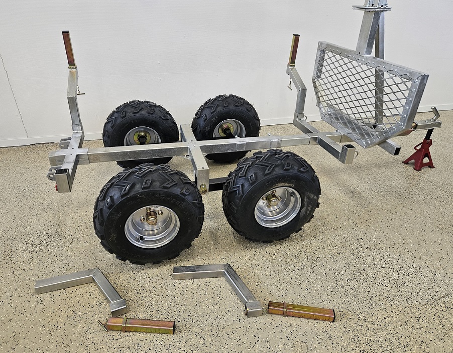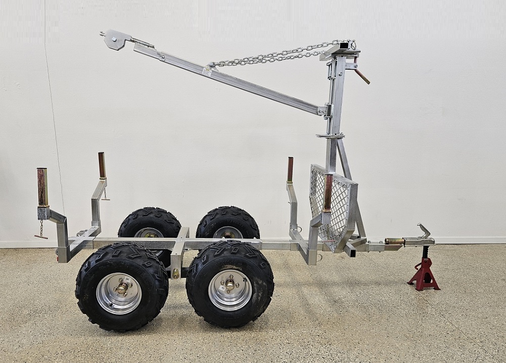 Monipuolinen ja kestävä tukkikärry mönkijään, joka sopii erinomaisesti metsätöihin ja muihin kuljetustarpeisiin. Kärryn pituutta voi helposti säätää tarpeen mukaan.