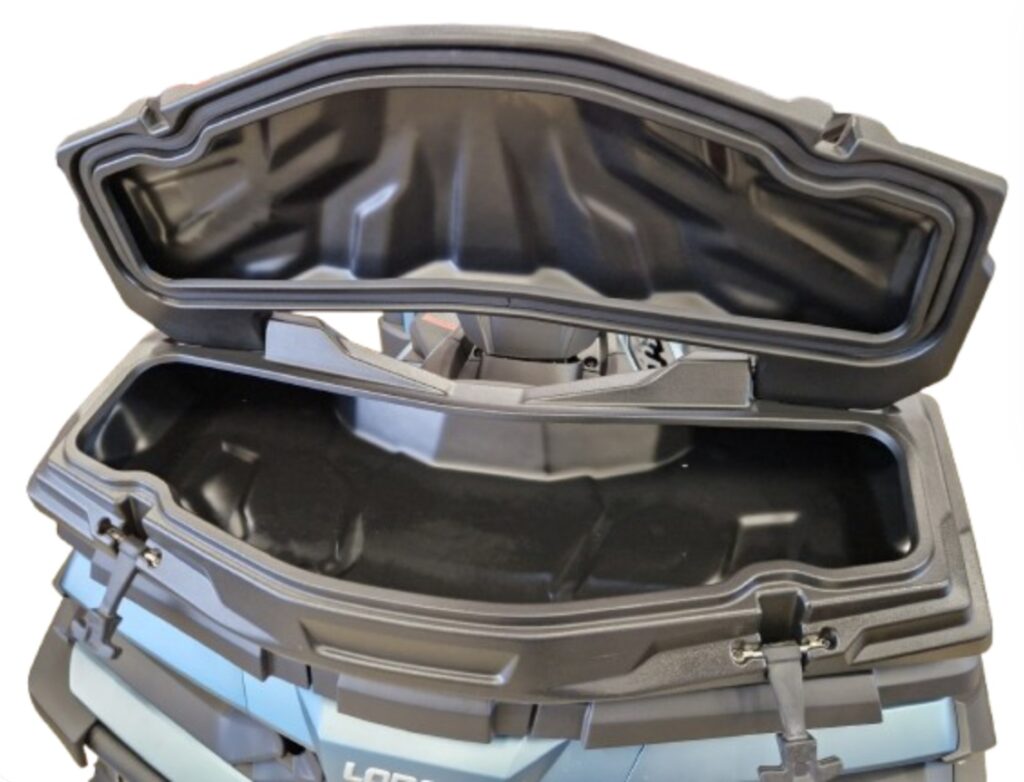 Nimenomaan Loncin XWolf 700 mönkijän etutelineelle suunniteltu tavaralaatikko. Etuboksi on helppo asentaa telineelle.