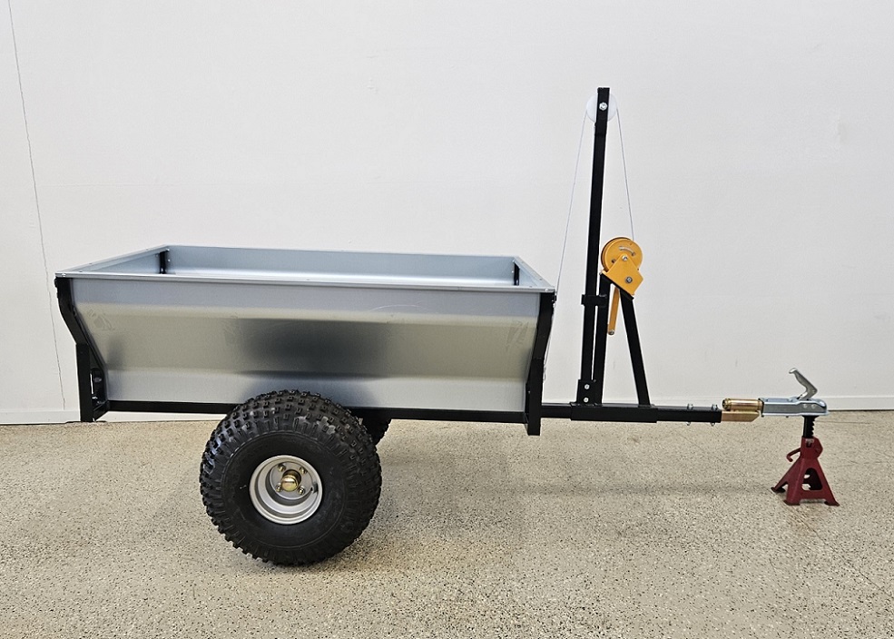 Mönkijän peräkärry, varustettu vinssillä helpoittamaan kippausta!