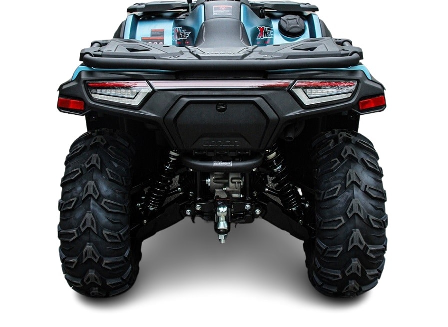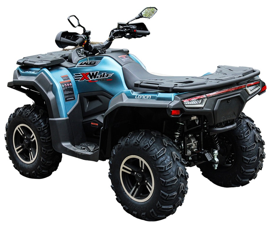 LONCIN XWOLF 700 EPS traktori mönkijä. Huippuunsa hiottu laatu ja viimeisin teknologia takaavat, että Loncin mönkijä on varma valinta parasta hintalaatu suhdetta etsivälle! LONCIN XWOLF 700 EPS on rekisteröity kahdelle, T3b luokan traktori mönkijäksi, huippunopeus 60 km/h. Vakiovarustelusta löytyy mm. EPS-ohjaustehostin, kestävät 12″ alumiinivanteet, LED ajovalot, metallihohto sininen erikoisväri, karkeakuvioiset 26″ renkaat, tehokas 1360 kg sähkövinssi. Saksalainen Boschin ruiskujärjestelmä pitää polttoainekulutuksen pienenä, mutta antaa samalla luotettavuutta talvikäynnistyksiin suuren 32Ah kokoisen akun kanssa. Tehokas Vääntävä 66Nm moottori hoitaa raskaammatkin kuormat.
