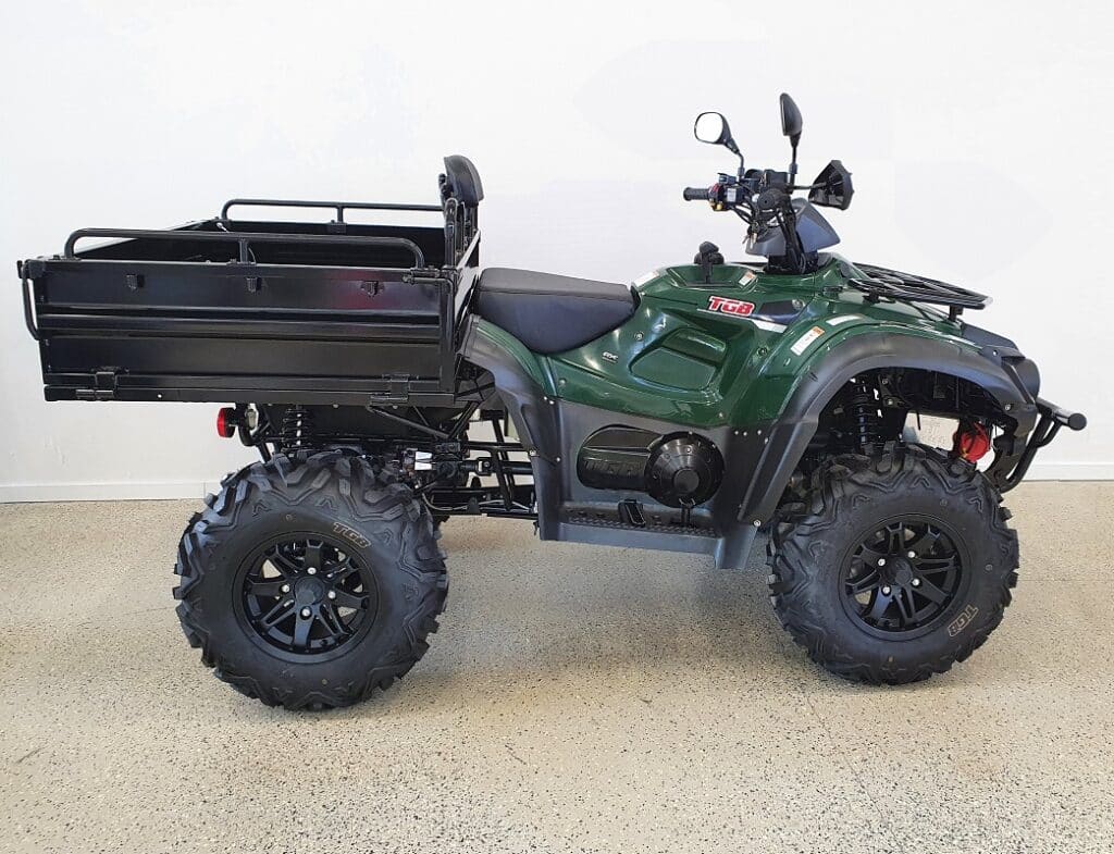 Valittavana takaveto tai aito jatkuva 100 % neliveto etupään lukolla – ei epävarmaa sähkötoimista automaattinelivetoa. TGB on traktori mönkijä, jossa on kunnolla painoa työntekoon, paino takaa huippuluokkaiset veto- ja työntöominaisuudet metsä sekä lumitöihin tai esimerkiksi hirven ja puunvetoon. Silloin kun tarvitaan parhaat työominaisuudet, luotettavan laitteen mutta edulliseen hintaan on valinta TGB. Tällä mönkijällä saa vetää tieliikenteessä jopa 830 kg painoista jarrullista kärryä.