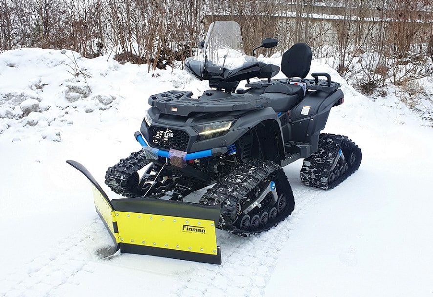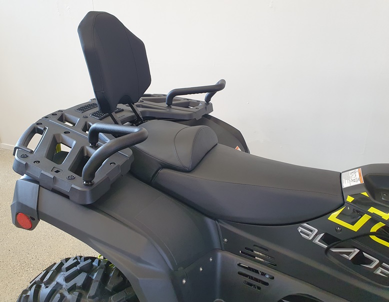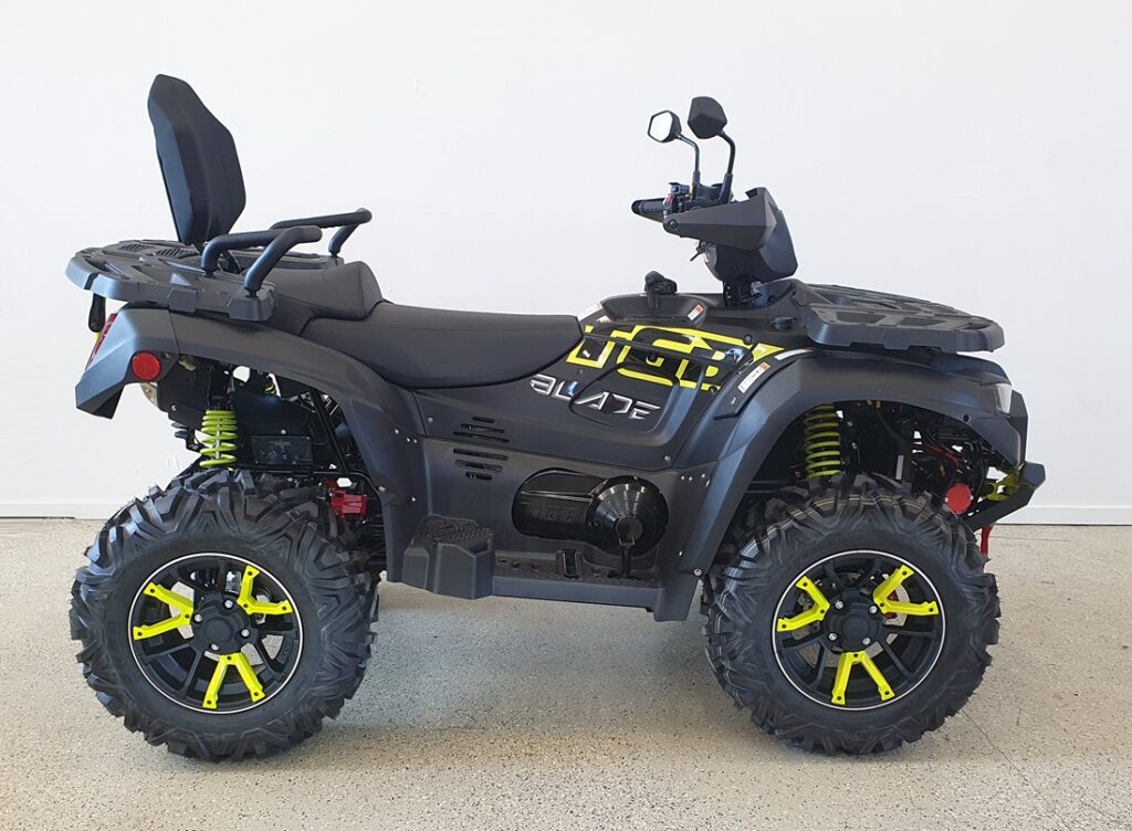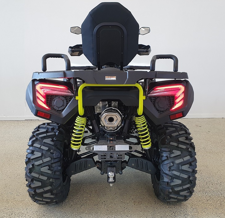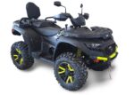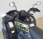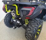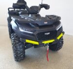 Vakiovarusteita tässä mönkijässä on runsaasti. Erikoismaalatut ja lakatut katteet, Isot ja järeät 26″ renkaat 14″ alumiinivanteilla, 32cm maavara, 100% neliveto erikseen kytkettävällä lukolla, LED-ajovalot,, tehokas 3000lbs (1360kg) vetokyvyn omaava vinssi, 50mm vetokuula, perävaununpistoke, muovinen pohjapanssari, metallinen alleajosuoja, alennusvaihde työkäyttöön sekä erillisjousitus vaativia metsäolosuhteita varten.