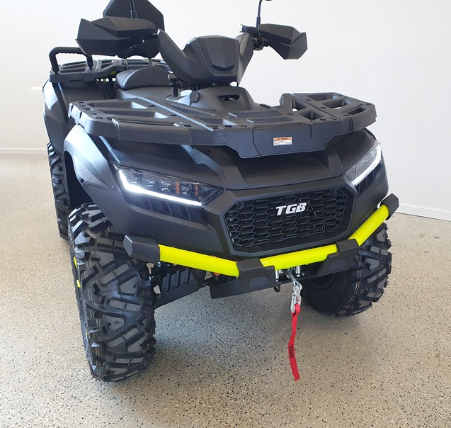 Valittavana takaveto tai aito jatkuva 100 % neliveto etupään lukolla – ei epävarmaa sähkötoimista automaattinelivetoa. TGB on traktori mönkijä, jossa on kunnolla painoa työntekoon, paino takaa huippuluokkaiset veto- ja työntöominaisuudet metsä sekä lumitöihin tai esimerkiksi hirven ja puunvetoon. Silloin kun tarvitaan parhaat työominaisuudet, luotettavan laitteen mutta edulliseen hintaan on valinta TGB. Tällä mönkijällä saa vetää tieliikenteessä jopa 830 kg painoista jarrullista kärryä.